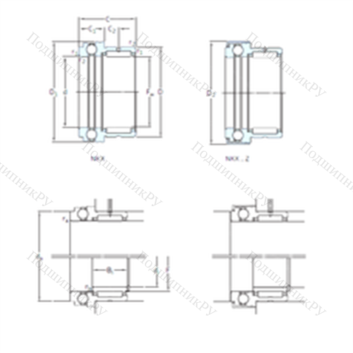 Малогабаритная конструкция Подшипник комбинированный NKX30 представляет собой совмещение игольчатого радиального роликоподшипника и упорного подшипникового тела качения (роликового или шарикового). В качестве упорной части может идти сепаратор, в то время как иные варианты поставляются без данного элемента. Также существуют фланцевые и бесфланцевые разновидности со стандартным или удлиненным тугим кольцом.